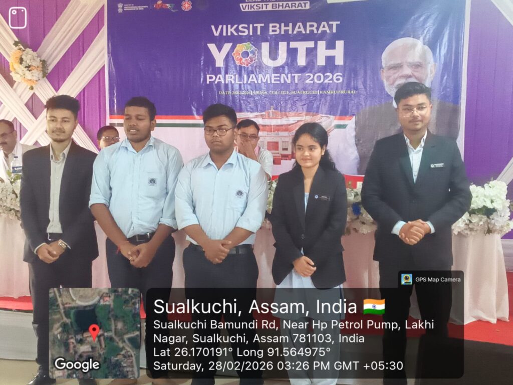 The Viksit Bharat Youth Connect and Viksit Bharat Youth Parliament 2026 (Kamrup District level) were held at Sualkuchi Budram Madhab Satradhikara (SBMS) College. This initiative was organized by ‘Mera Yuva Bharat‘ (MY Bharat) under the Ministry of Youth Affairs and Sports, Government of India, in collaboration with the Internal Quality Assurance Cell (IQAC) and the Department of Political Science of the college on 28-02-2026